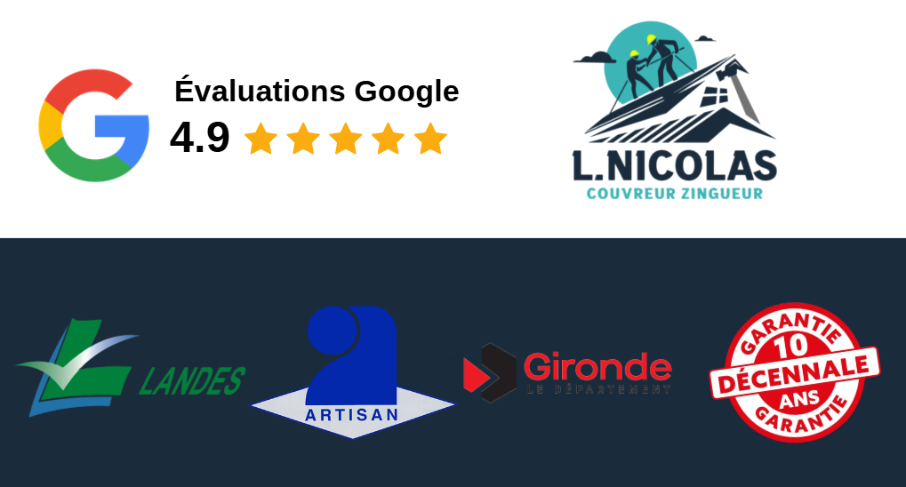 Sécurisez votre patrimoine avec Nicolas Couvreur. Parce que la protection de votre foyer ne souffre d'aucun compromis, l'ensemble de nos travaux de couverture et de zinguerie est couvert par une assurance garantie décennale 10 ans. Notre professionnalisme s'exprime par une intervention d'urgence fuite 7j/7 sur Pessac, Dax et l'ensemble des départements de la Gironde et des Landes. Artisan assuré et rigoureux, nous vous garantissons un devis gratuit immédiat, le respect des normes de sécurité les plus strictes et une protection totale de votre toiture face aux intempéries.